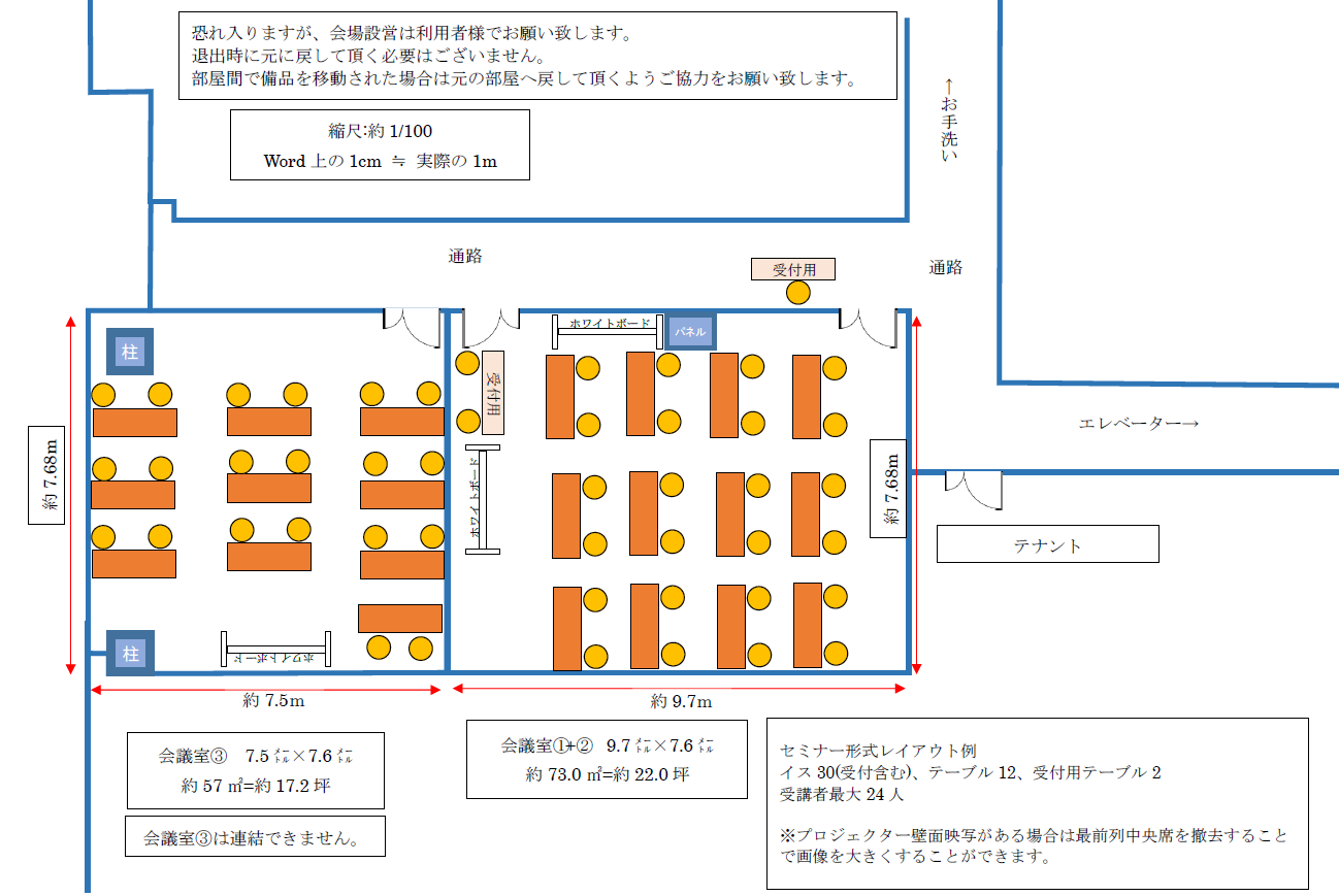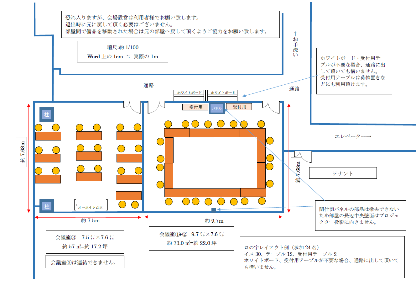 | 会議室1+2 | 74㎡ | 5,500円 |