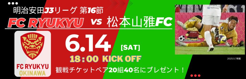 6月14日(土)「FC琉球-松本山雅FC」ホーム戦観戦チケットをペア20組40名
