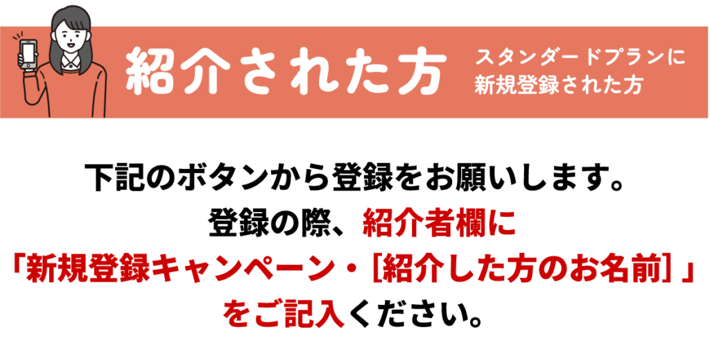 - ◯紹介者は、スタンダードプランまたはダブルプランの会員である必要があります。