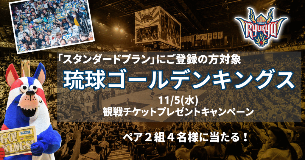 スタンダードプラン会員の皆さまへ、琉球ゴールデンキングスの観戦チケット、プレゼントキャンペーンを実施します!