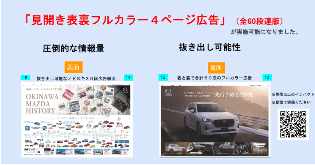 インターネットの普及に伴い便利な時代になった一方、真偽不明の情報も飛び交うようになっています。弊社では、これまで培った信頼をベースに、「いままでになかった価値を提供する」「沖縄の発展に貢献する」という想いを込め、最新鋭機導入を機に、新たな広告施策を提案いたします。