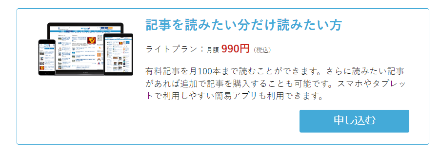 月100本の記事が読み放題のライトプランはずっと月額990円(税込み)
