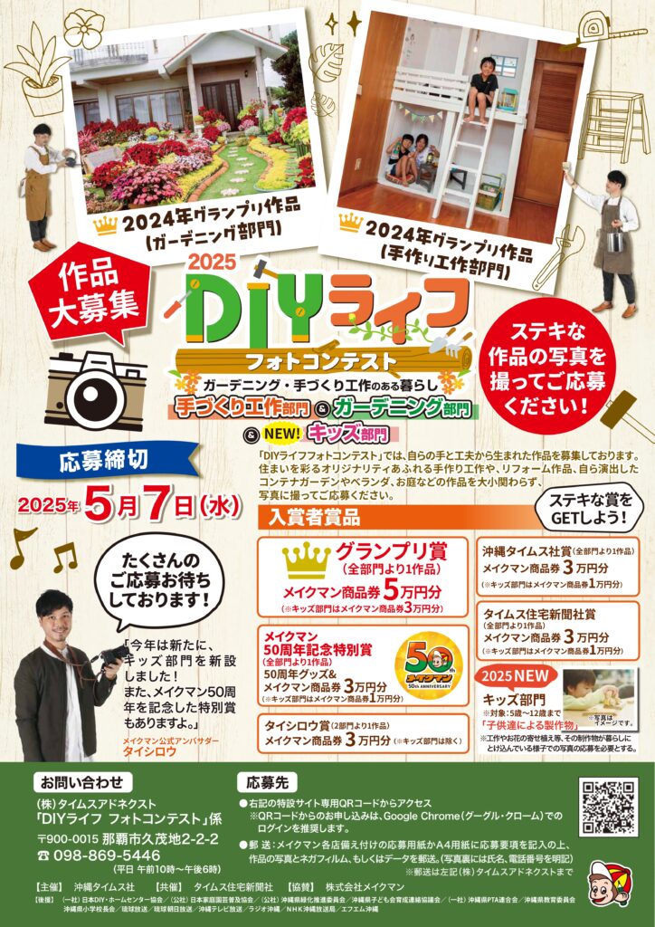 〒900-0015 那覇市久茂地2-2-2 タイムスアドネクスト「DIYライフフォトコンテスト」係まで